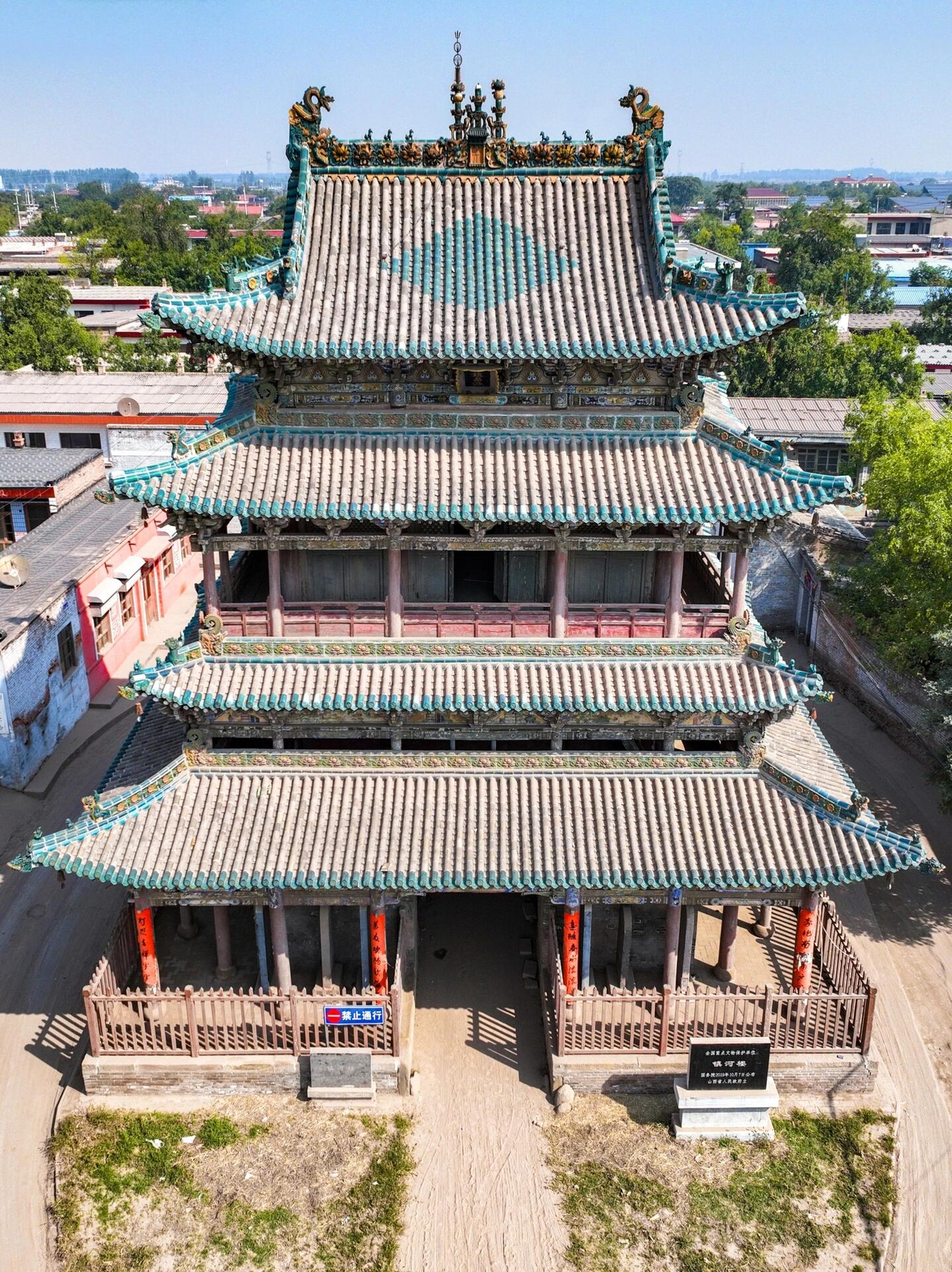 光绪二十六年的秋风吹过京陕古道时,銮驾扬起的烟尘里藏着惊魂未定的喘息。慈禧太后攥着绢帕的手还在抖,刚从庚子国难的炮火里逃出来,车辇碾过贾令村的青石板路,突然被一阵琉璃瓦的反光刺了眼。撩开轿帘的刹那,这位见惯了紫禁城金銮殿、颐和园佛香阁的老佛爷,竟对着眼前这座楼阁愣了神——四重檐歇山顶像被匠人折了四叠的锦缎,在夕阳里泛着沉稳的光泽,檐角垂落的铁马还在风里叮咚作响,砖雕斗拱里嵌着的琉璃构件,把晚霞的颜色都揉碎了铺在墙面上。随行的太监后来在回忆录里写,太后当时说了句"这楼比宫里的角楼多几分野趣",话音未落,马蹄已经踏过了楼下的券洞,只留下镇河楼的影子,在暮色里拉长了半里地。