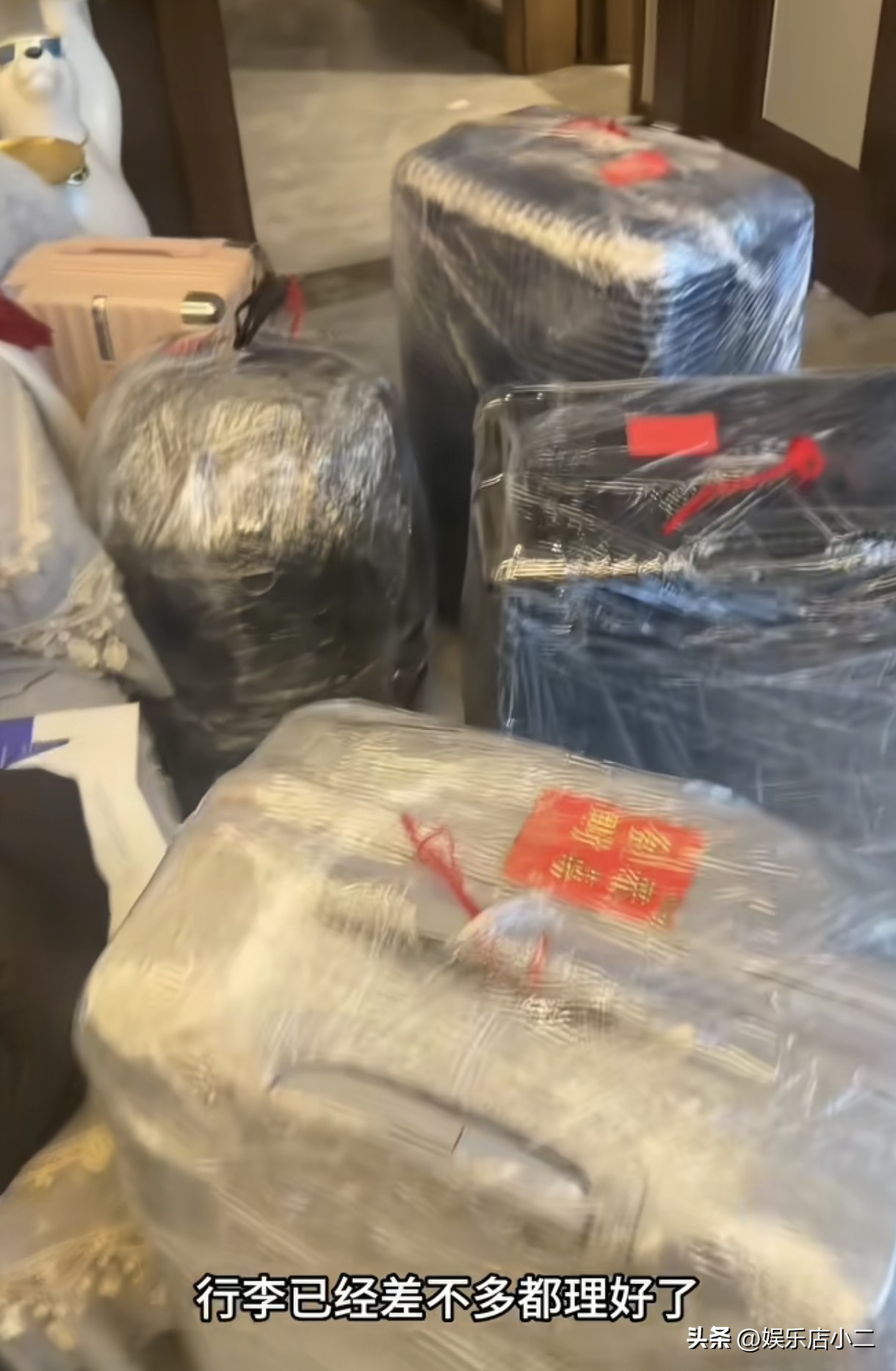 从视频中能看到,三个女孩的行李很多,足足打包了五六个行李。
