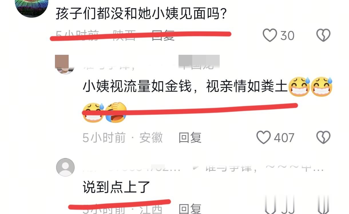 有网友觉得三个外甥女来这么久了,瑾汐作为小姨却没有来看望她们,还嘲讽瑾汐“视流量如金钱,视亲情如粪土”。