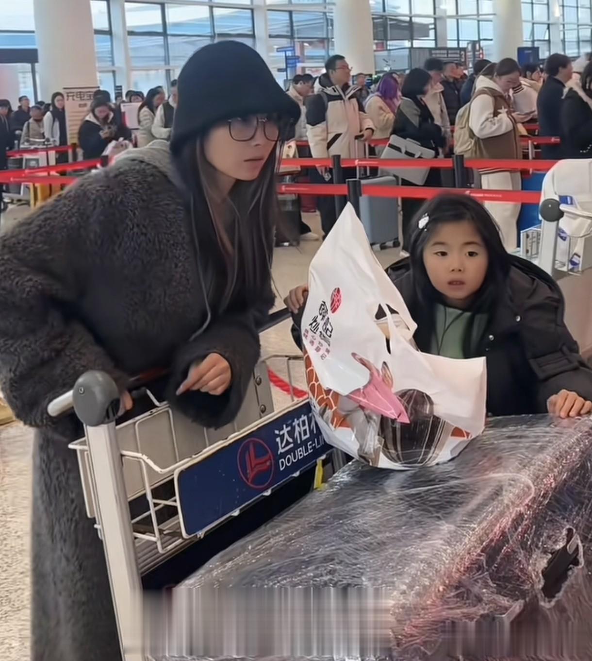 不仅如此,因为国际航班的行李不能超过23公斤,贴心的哈爸哈妈的还把她们行李一一称重。