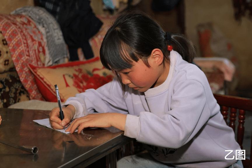 光秃的水泥地,十根木柱子撑起了老旧的房梁,一张破旧的沙发,一台二手的电视,漆黑的小屋里,白天写作业的彤彤,必须打开灯泡才能下笔。“爷爷捡破烂,拾回来一个电饭锅,这样早晨的时候,奶奶就不用太早起床去生火了。”彤彤的懂事叫人心疼,她埋头仔细抠着碗里的菜叶,每次吃完饭,彤彤都会主动地把碗筷放到不锈钢盆里,泡上一会儿后再一个个刷干净。“彤彤有心劲儿,卫生室免费的药,到日子时候,她下了学顺路就给带回来了,一点都不用我们操心,回来还告诉我要怎么吃。”