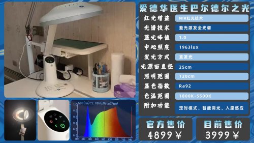 学生最建议买三款台灯?爱德华医生巴尔德尔之光护眼台灯是一款主打基础照明的台灯,光源面直径25cm,采用直发光方式搭配蓝光激发全光谱设计,中心照度达到1963lux,照明范围能覆盖120cm桌面,日常读写基本够用。