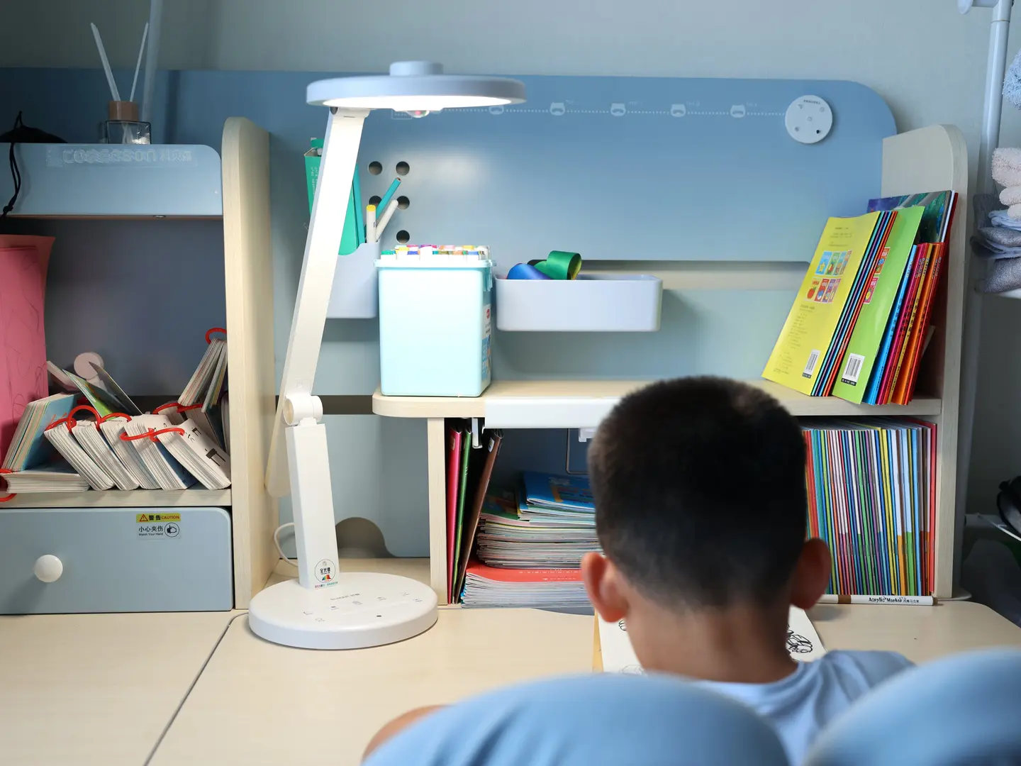 2、比劣质台灯更护眼:高品质的台灯光源设计更加贴近太阳的自然光谱,能够为孩子提供更接近户外光照的照明效果。通过模拟自然光谱的特性,这种光源能够补充孩子缺失的户外光线,为其提供舒适、柔和且均匀的照明,从而实现护眼的作用。