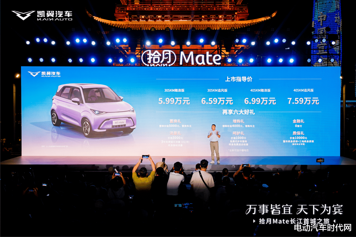 一直以来,凯翼汽车始终以“接地气”的品牌形象深入人心,其产品价格策略更被誉为同级标杆。在本次活动中,凯翼汽车再度践行“让高品质出行触手可及”的承诺,正式公布旗下新车拾月Mate的全新价格。新车续航里程为305KM-405KM,官方指导价为5.99万元至7.59万元。