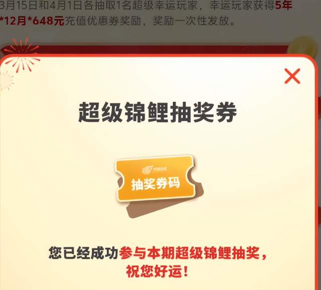 另外,如果你是小米设备用户,在官服首次注册,充值满6r还能再领一张6r券。最让人心动的是“超级锦鲤”活动,通过分享专属链接让别人点进来登录,你就能获得抽奖资格,奖品是整整5年的648r优惠券。