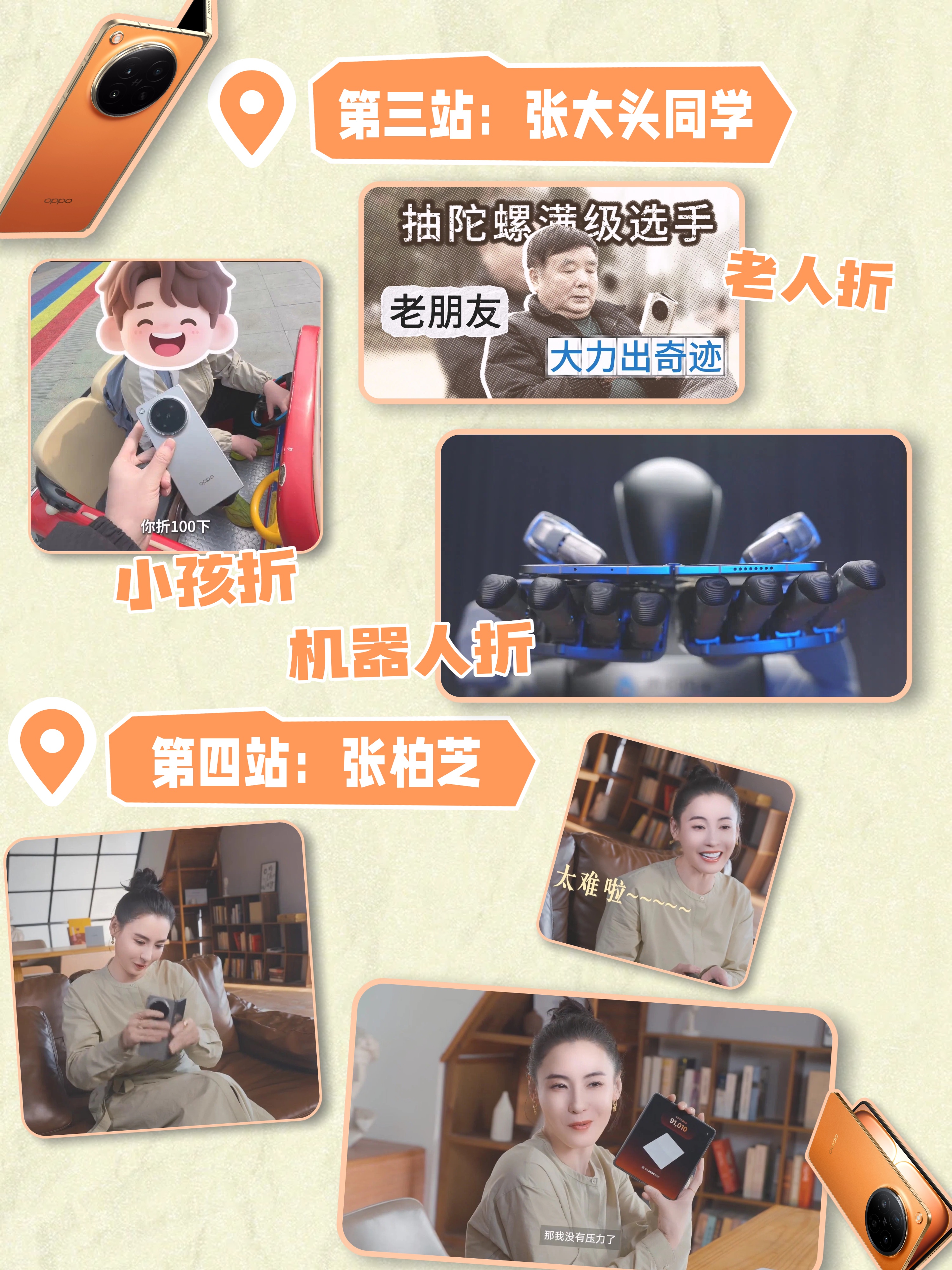 还有女神张柏芝也折了600多次,简直折到“崩溃”🤣另外博主“张大头同学”和“极速拍档”甚至用上了机器人以及赛车漂移,我估计这台OPPO Find N6出厂前也没想到自己会经历这些啊。。。