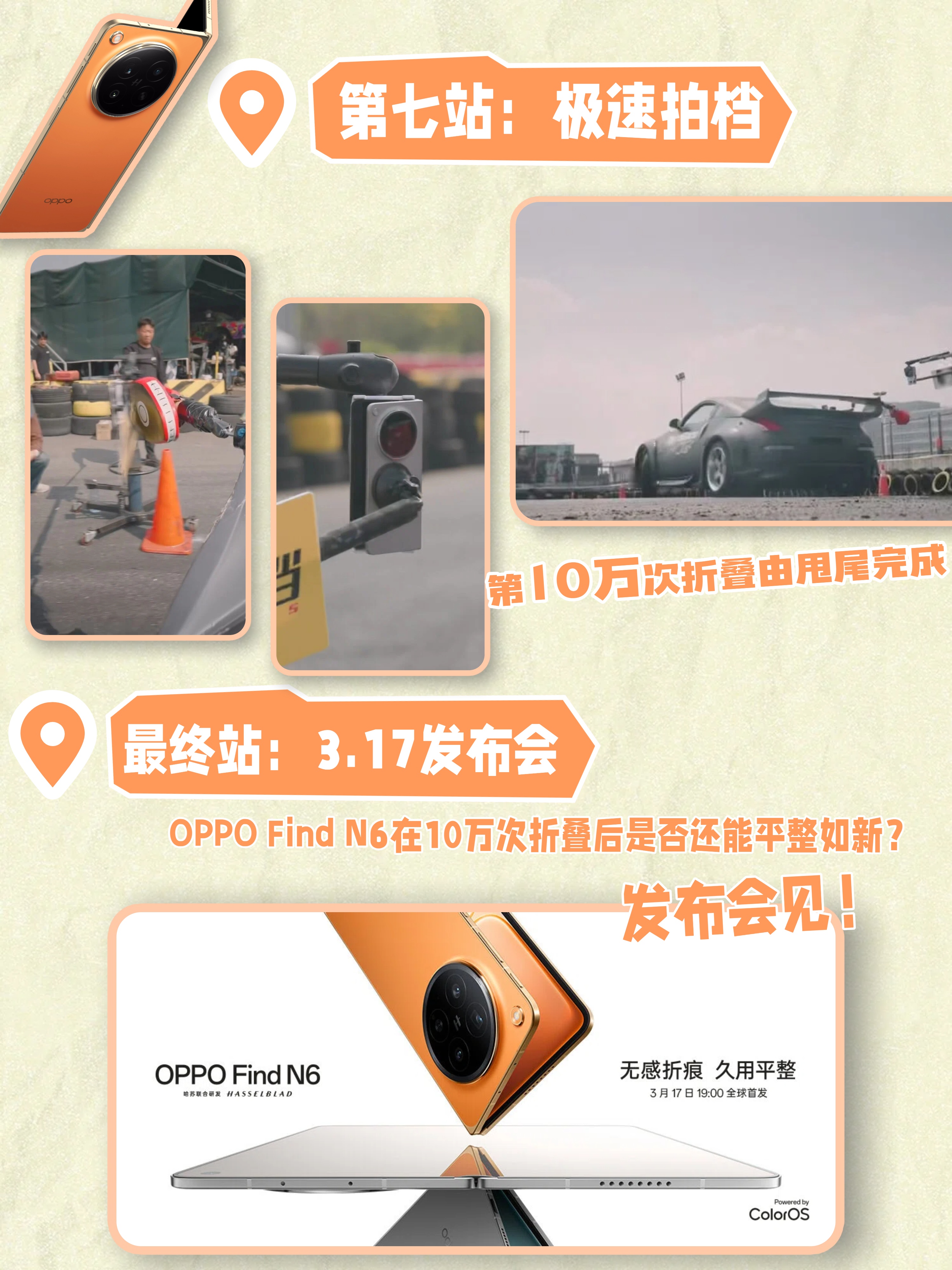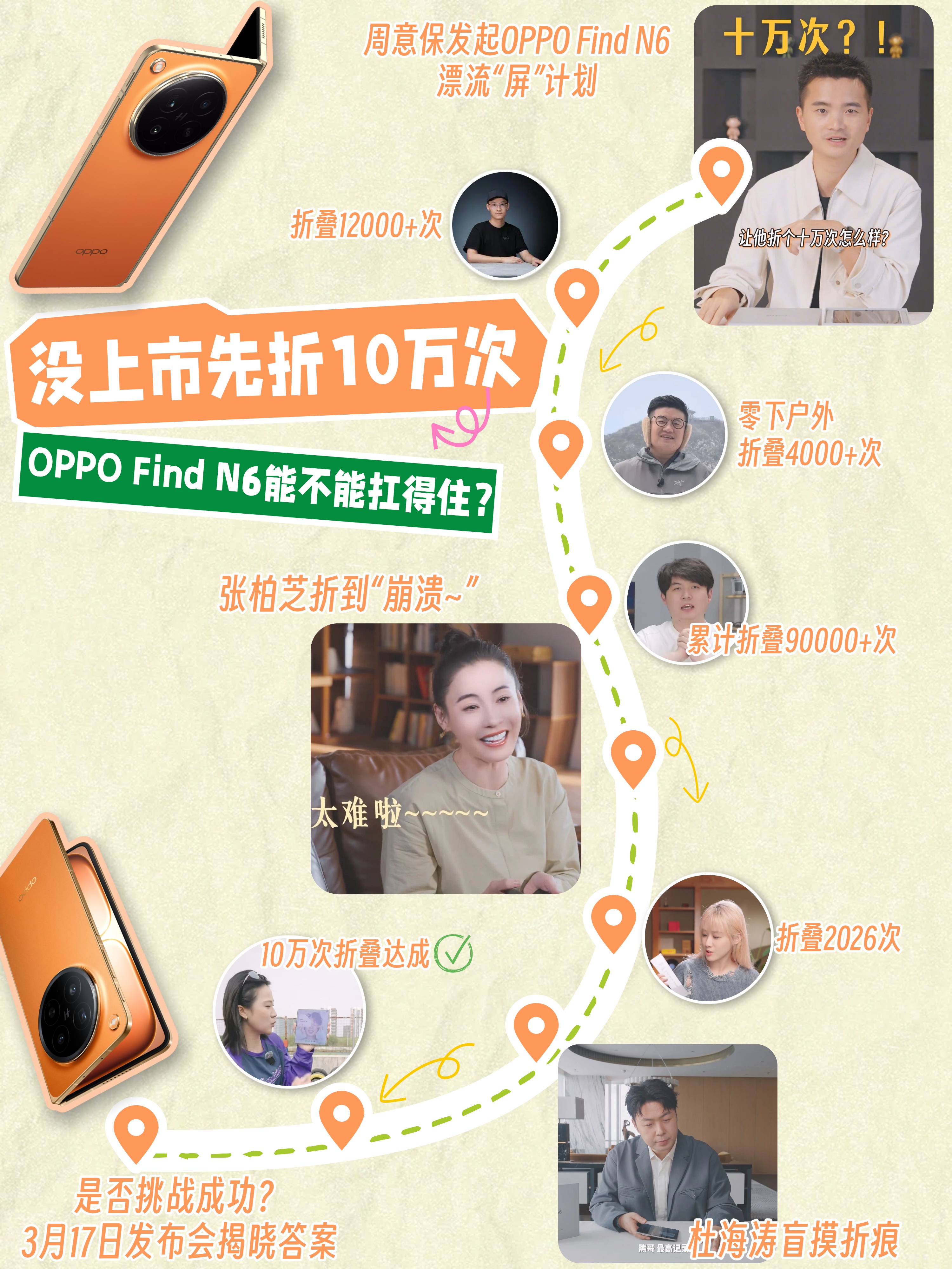 反正我看完了全程的漂流“屏”计划挑战后感觉10万次完全还不是OPPO Find N6的实力上限,甚至对它来说是轻轻松松,至于是否真能做到「久用平整」,就等着3月17号的发布会看看咱回事吧👀