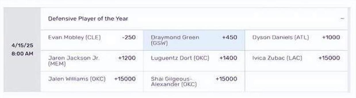 随着勇士战绩回升到西部第五,格林的防守价值被重新评估。数据显示,当他在场时球队防守效率联盟第三,而当他休息时直接跌出前十。这种"格林效应"让博彩公司迅速调整赔率,目前他已从15:1飙升至6:1,距离榜首莫布里仅差2个名次。"这赛季可能是我最后一次冲DPOY了。"格林在训练结束后对记者眨眨眼,"但你们知道吗?我更希望看到的是,十年后有年轻球员说:'我防守时总想起追梦在字母哥面前的那次封盖。'"这位老将转身走向球场,背影里藏着一个35岁防守传奇的倔强与执着。