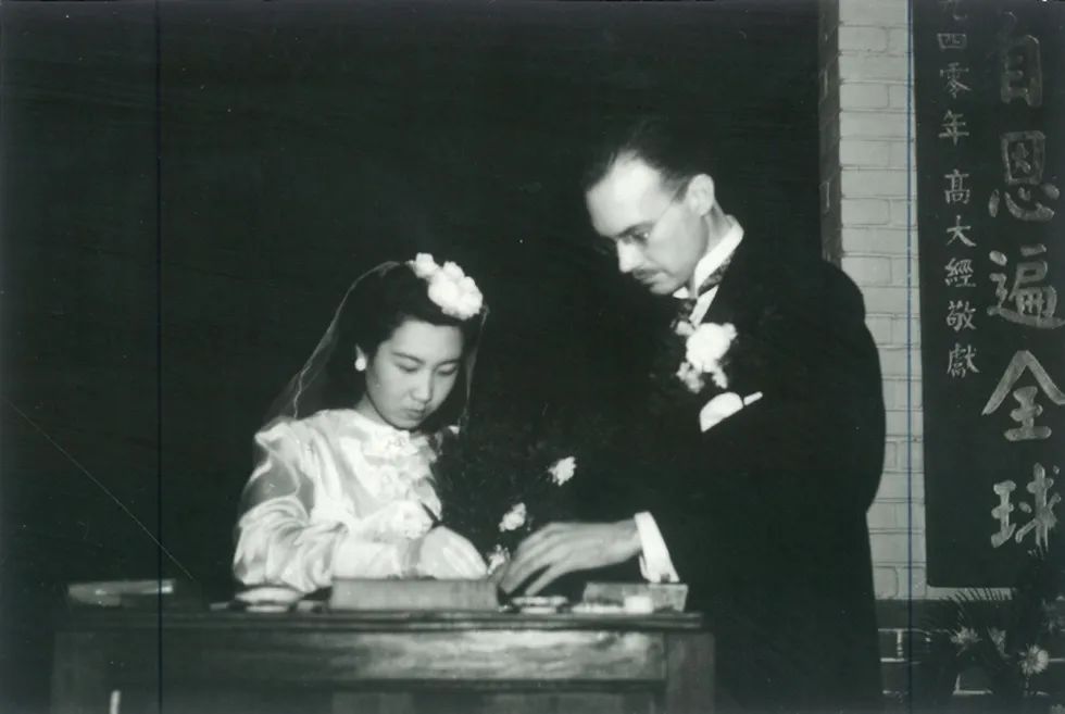 民国三十二年十二月十八日,一场跨国婚礼在烽火连天的陪都重庆举行。早在当年九月三日,高氏便致函未来的六姐夫张守谦商量订婚事宜(图5):守谦先生台鉴:前至府上,承蒙款待,及获雅教,至为心感。今为中英文化协会举行茶会,敝国大使同孔部长皆往参加。佩与世芳因得此良机与孔部长相见,当时即请敝国大使将吾二人之订婚事告知孔部长,蒙得彼之赞同,并介绍世芳与外交部次长等相见,明拟与世芳往林先生处拜访。决定订婚日期前请先生驾渝面商,以便与王先生会面一次是幸。请来渝时通知世芳,将备宴邀请。专此奉达,顺颂时祺。张夫人前请代为致意。高罗佩拜启九月三日张守谦、水世玲夫妇当时暂居新开寺龙井湾,亦今天的重庆市沙坪坝区,是战时离世芳最近的娘家人,故守谦受邀代替水钧韶担任主婚人。高罗佩函中提及的孔部长应是国民政府财政部长孔祥熙,王先生或是国民政府宣传部部长王世杰,根据高罗佩长子高惠连提供的相关照片及父母结婚证书,可知婚礼在重庆基督教思恩堂举行(图6),王世杰及王芃生夫人钟贤英为介绍人,牧师张海松为证婚人,荷兰驻华大使罗芬克及张守谦为主婚人。(图7)高罗佩在渝都的许多中国友人赠送字画、贺礼庆祝两位新人的文定之喜,如国民政府高级顾问许世英、外交官王芃生、丝竹大师甘涛等等,不一而足。