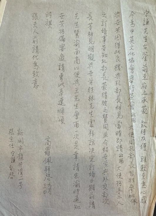 此信将中国传统父母“十五年掌珠护,一朝嫁为他人妇,生死在别家”的无奈与不舍表达得淋漓尽致,字里行间充溢着对女儿婚姻美满的无限期待,同时又超越了“一人一家”的微观视角,而从国族未来的宏通视野审视这桩跨国婚姻,充分展现出水父的博雅达观。之子于归