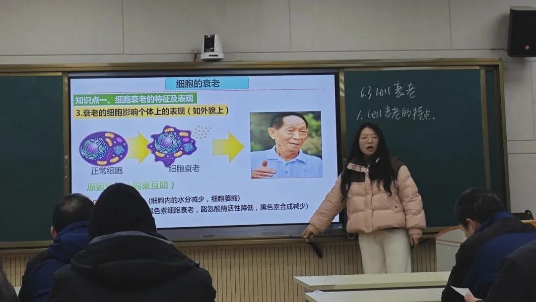 朱晓灿老师详细拆解了课堂环节,从视频观察、明确学习目标、提问个体衰老特征、讨论细胞衰老特征、追问两者联系,围绕“从宏观到微观”的逻辑设计切片教学,让概念建构在探究中自然发生。