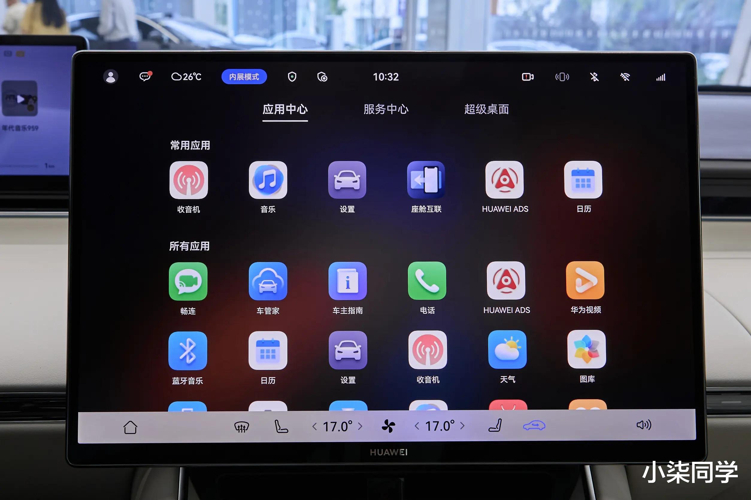 车机部分,2026款智界S7搭载了HarmonyOS 4座舱系统,支持卫星导航系统(华为Petal)、道路救援服务、HUAWEI HiCar手机互联映射、车载5G网络+WIFI热点、面部/声纹识别、四音区语音识别控制系统、无麦K歌2.0、在线影音、车载应用商城等功能。