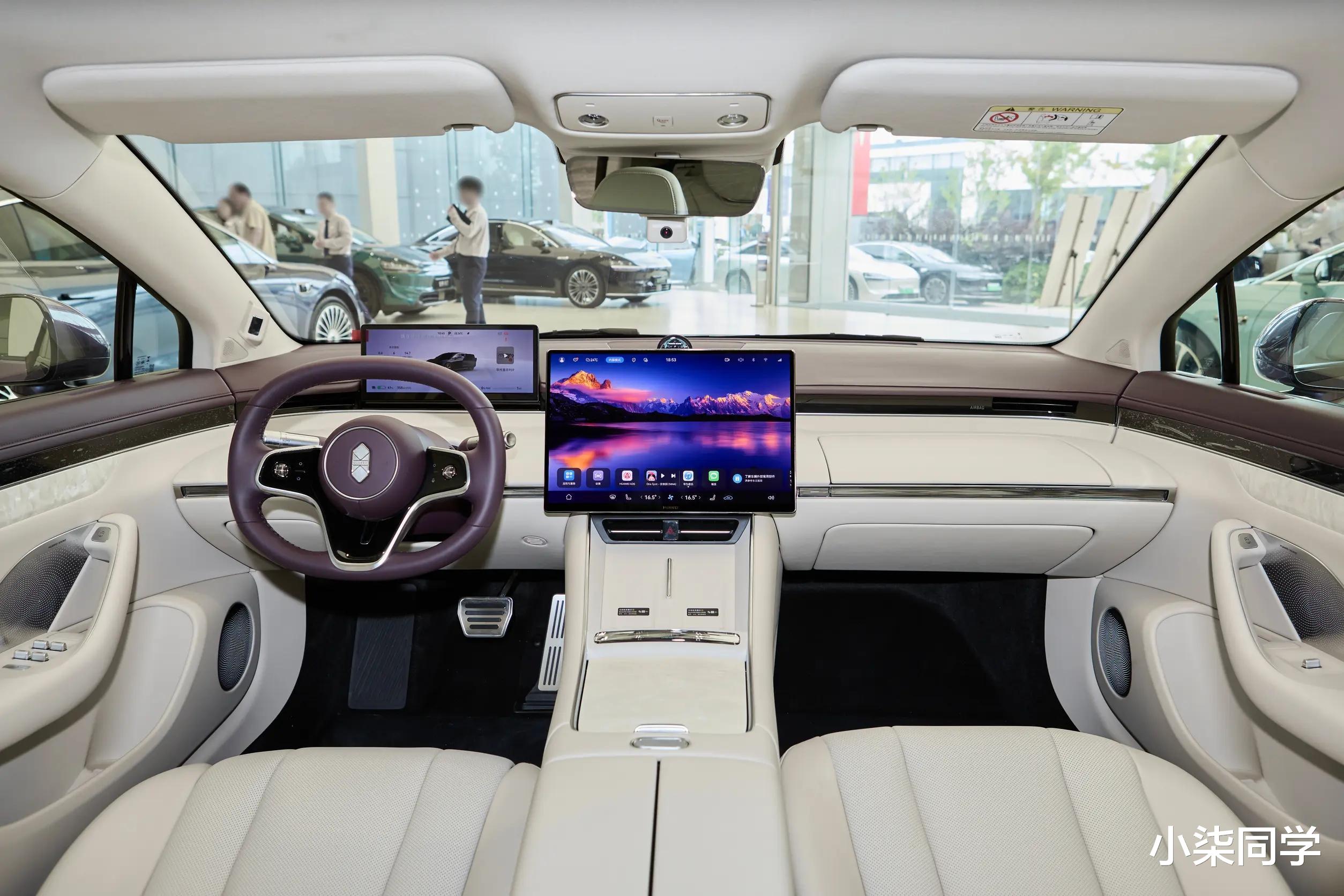 内饰设计部分,2026款智界S7中控台区域搭载了三幅式平底方向盘、12.3英寸液晶仪表、16.1英寸3K悬浮式中控屏、