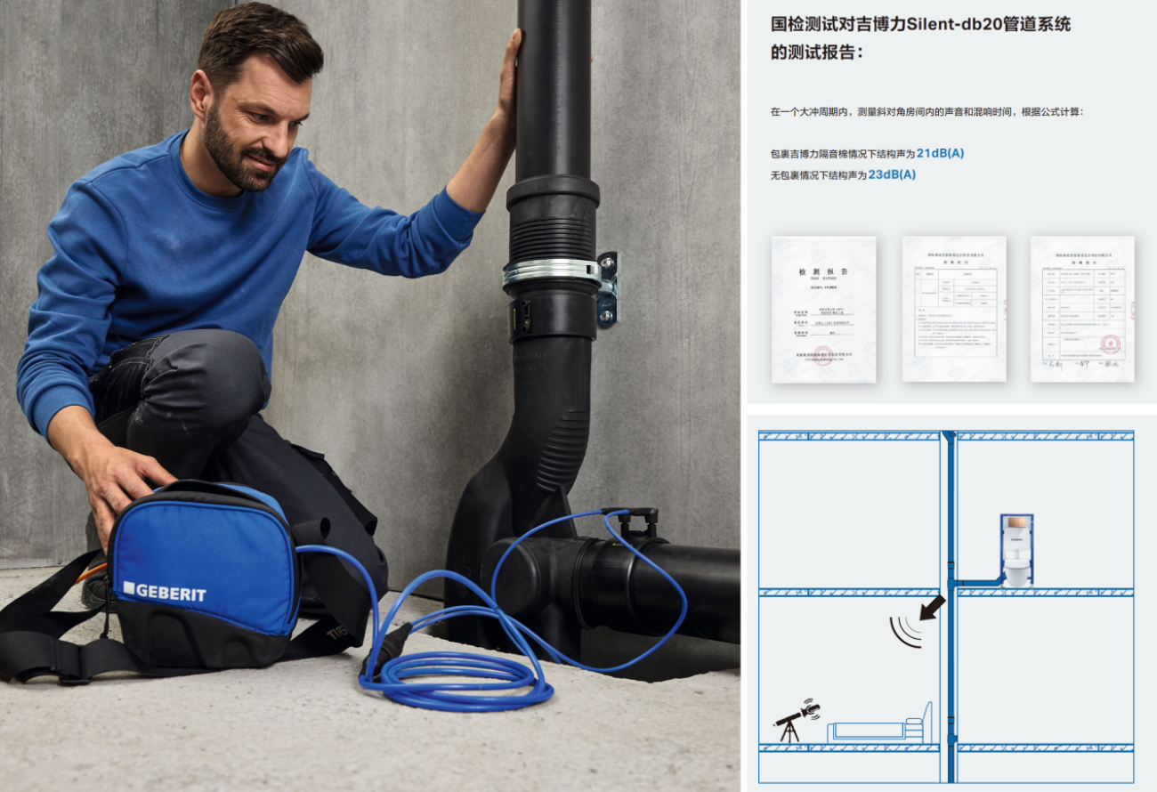 如果说根治臭、漏问题是解决住宅的绝对硬伤,是吉博力为“好房子”构筑起的无形的健康屏障和对长效品质的呼唤。那么,噪音问题则关系着更细致入微的居住体验升级:从吉博力同层排水到HDPE材料本身基于韧性和厚度的降噪,到Silent-db20静音排水系统,再到隐蔽式水箱安装于墙体内降低冲水噪音等,每个细节的叠加带来了排水降噪的大升级。