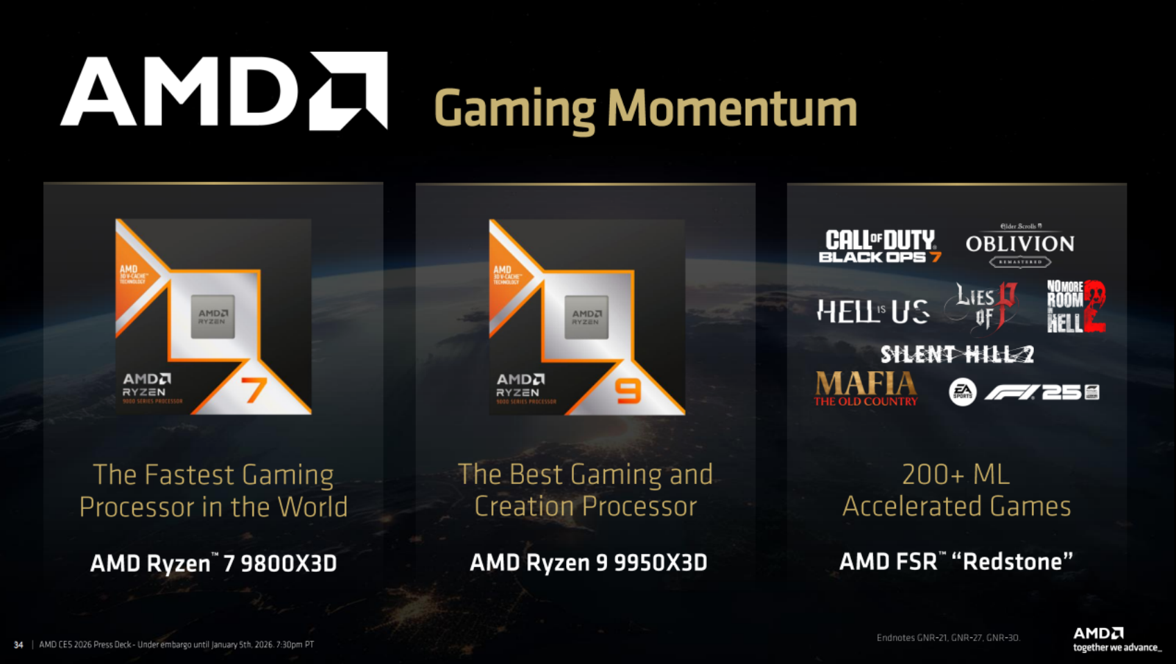 不断进化!AMD 正式推出 9850X3D 以及 FSR 4 Redstone 技术