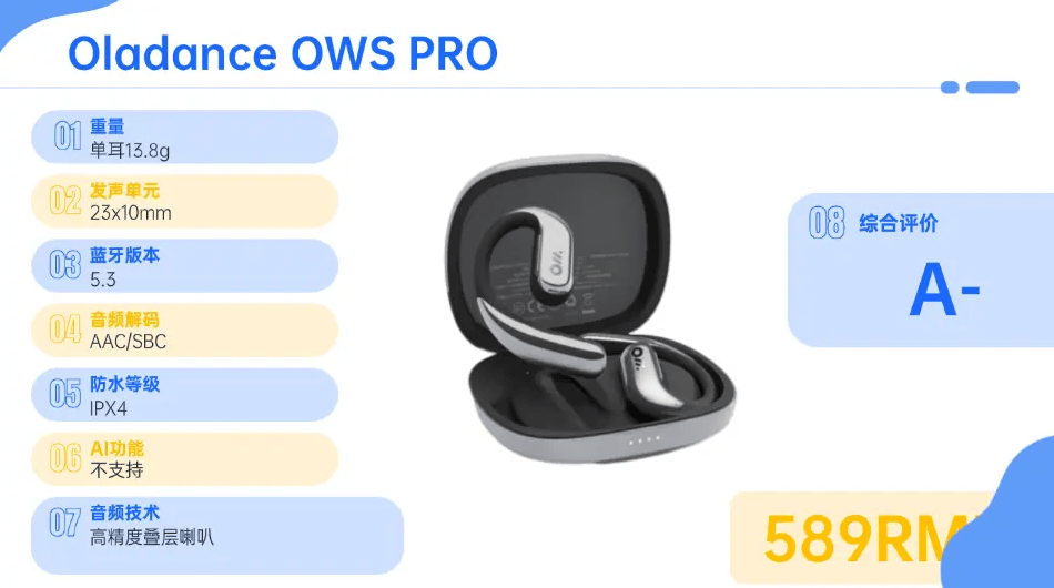 Oladance OWS Pro在声场表现与续航能力方面展现优势,有立体音且几种模式切换。有压力触控键,比较方便。它改善开放式耳机音质问题,虽然在单次续航与防水等级方面中规中矩,但其总续航与声场调校使它成为注重音乐沉浸感与长途差旅用户的优选。