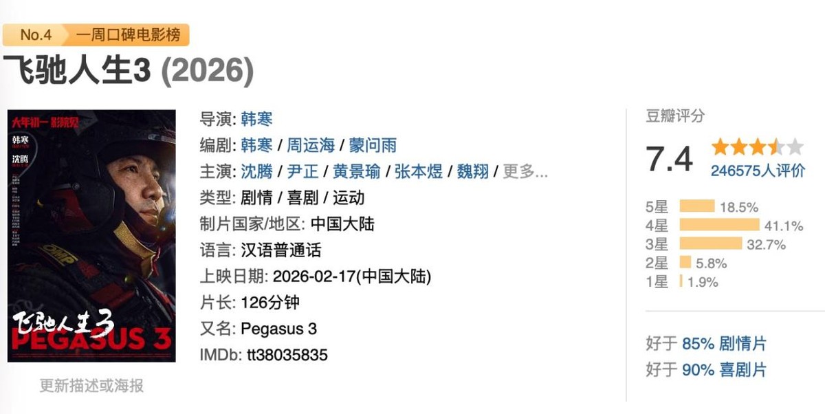 2026年春节档的票房战场,几家欢喜几家愁,而《飞驰人生3》无疑是最吸睛的那个。