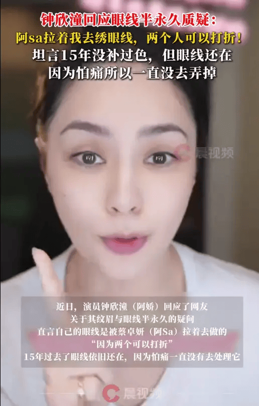 近日阿娇回应半永久疑问,直接曝大瓜!眼线是15年前被阿Sa硬拉着做的,就因为两人同行能打折,现在眼线还清晰得很,她却因怕