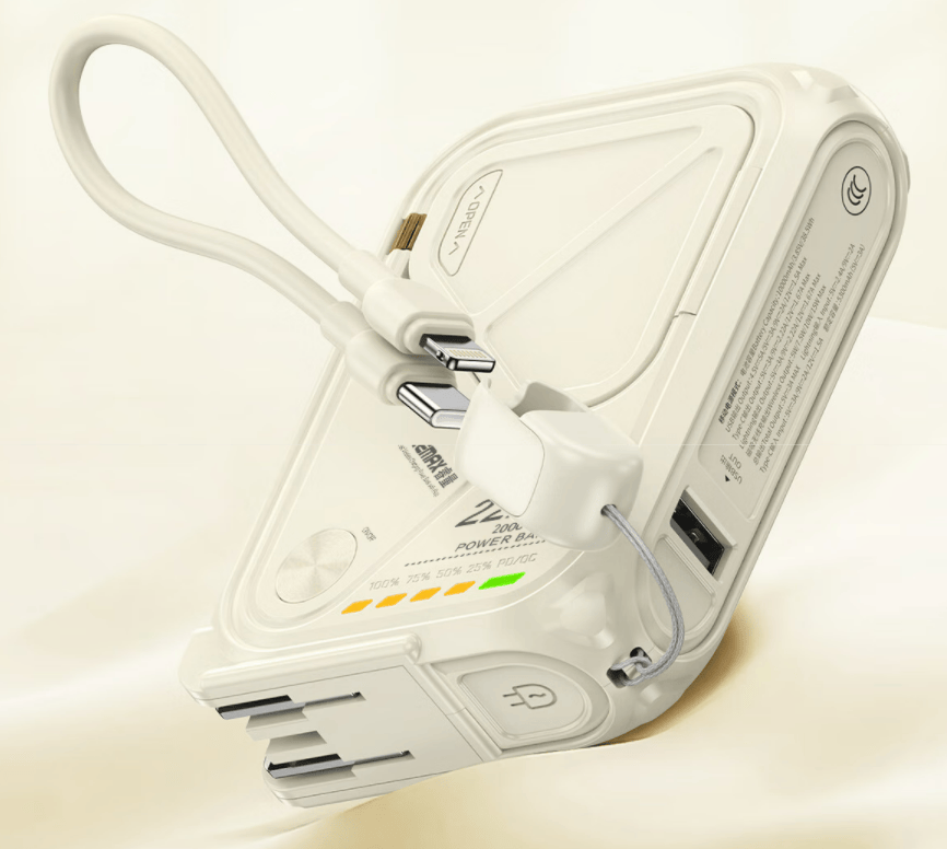 这款具备2万大容量电池,可实现多次设备充电,适配长途旅行或出差场景。尺寸为 109mm×68mm×37mm,净重 375g,手感适中。支持 22.5W 充电功率,可为手机、平板等设备快速充电,同时具备小电流模式,适配低功耗设备。自带充电线,无需额外携带,使用便利。高功率充电时会出现轻微发烫现象,属于常见情况,充电期间建议留意温度变化。