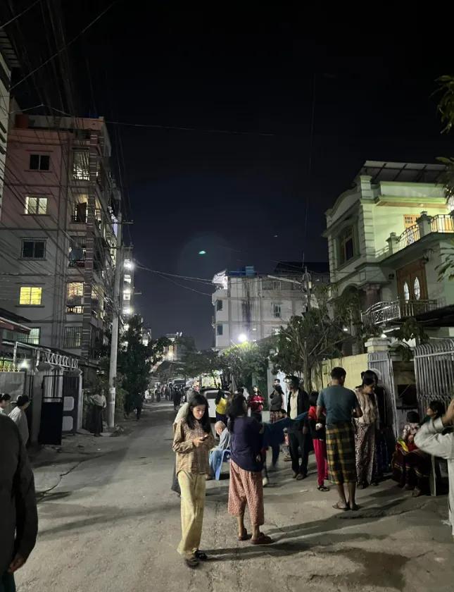 一位曼德勒市民说道,"这次地震相当强烈,大家都从家里跑了出来,有些从楼上跑下来,还伴随着响声,感觉又像之前28号那次一样。"