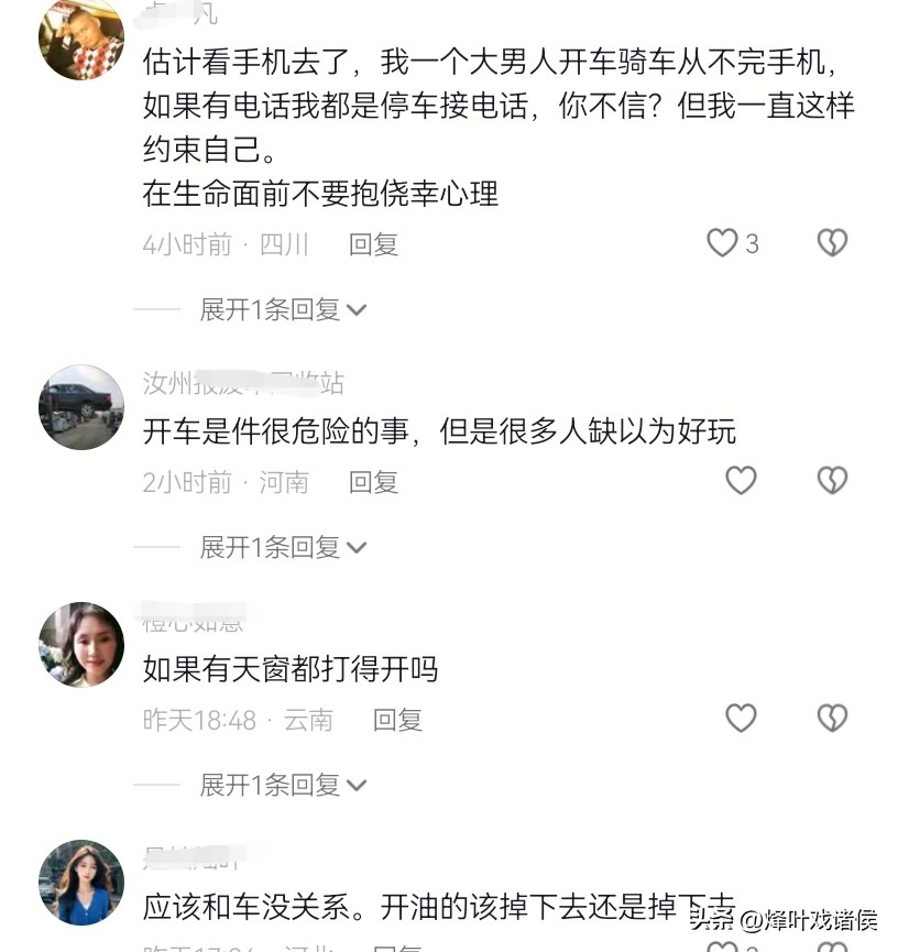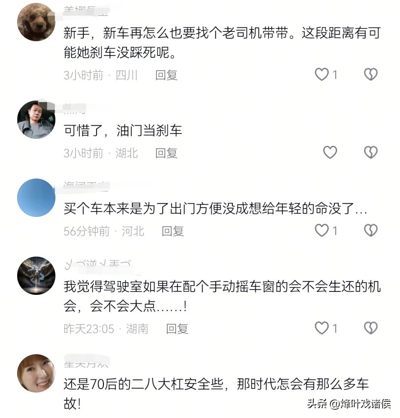 还有网友说,事发时估计大意了,要么看手机了,要么注意力不集中,从而导致了突发情况后,乱了手脚,不知所措。