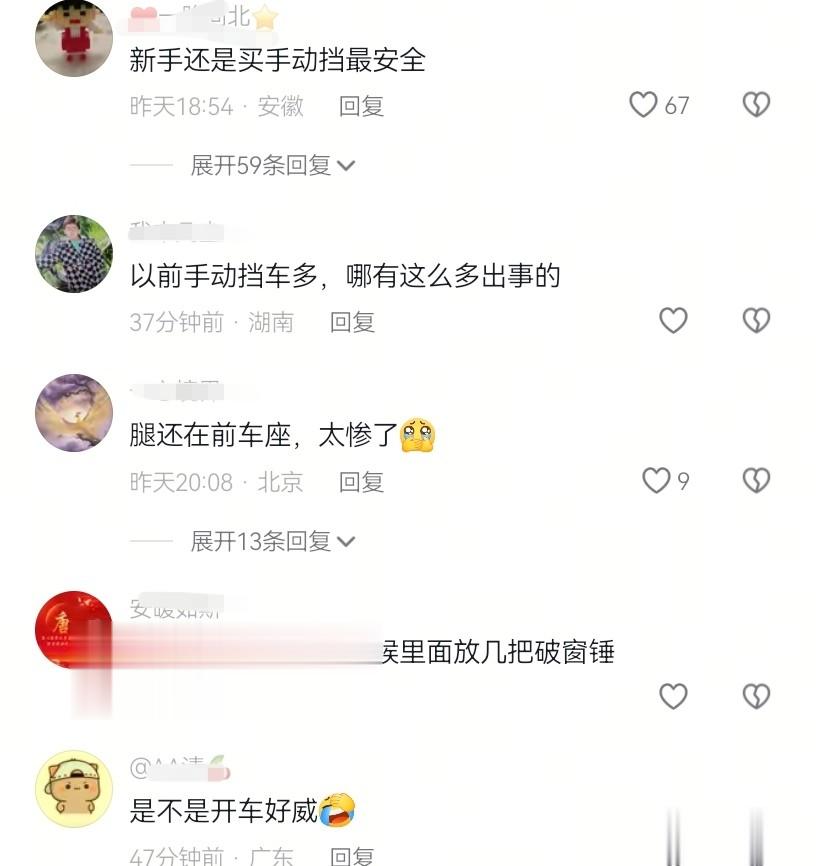 有网友说,还是手动挡安全一些,出现意外,可以瞬间熄火,意外会少一些。