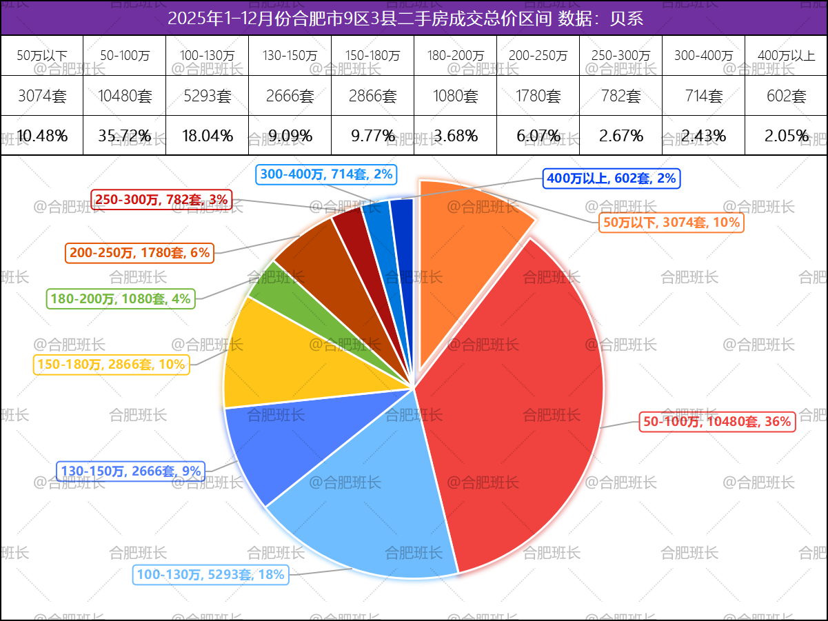 从数据中能清晰看出,过去一年的合肥二手房市场,低总价房源成为最多选择,刚需市场的强劲韧性,也是支撑合肥楼市平稳发展的坚实基本盘。
