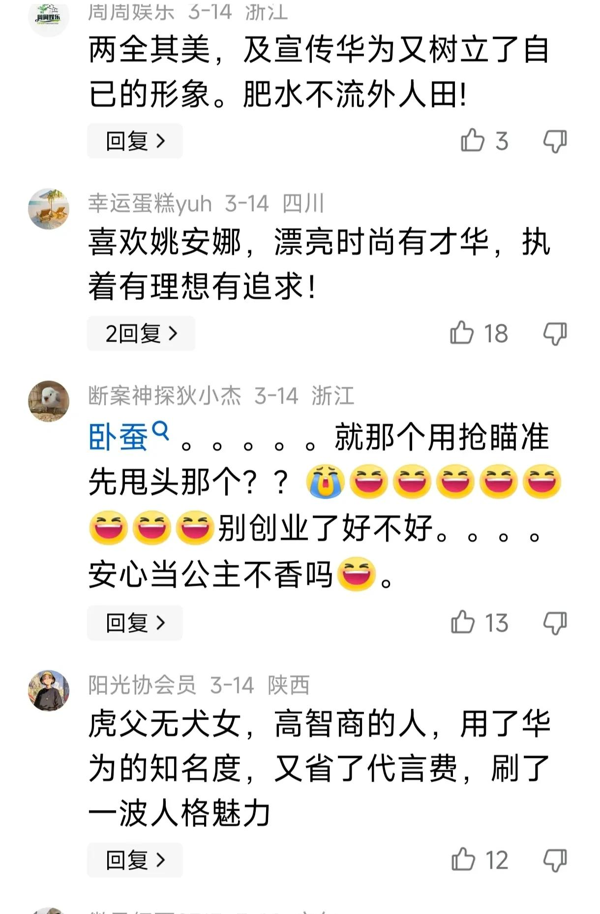 关于姚安娜为华为拍宣传片的事,很多网友表示理解和支持。