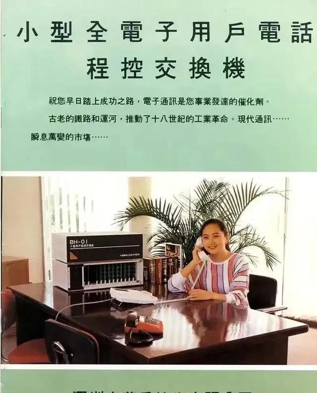 那时的孟晚舟,右手拿起电话放在耳边,微笑自然地坐在办公桌前,为公司电话程控交换机做广告宣传。