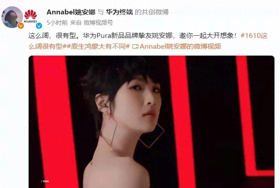 3月14日,华为Pura新品的宣传视频片里,姚安娜以友情出镜的方式亮相。