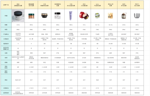 下面是几款发膜的详细数据。