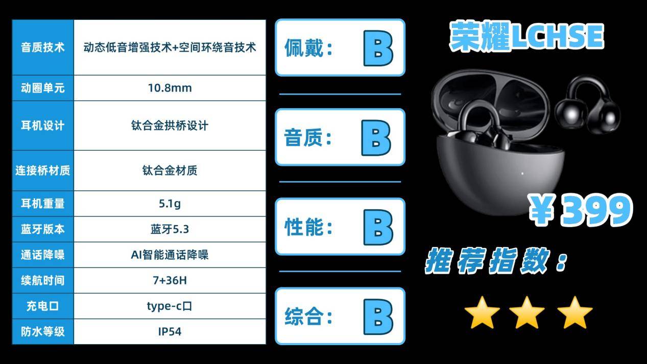 推荐理由:开放式耳机里数一数二的音质体验,听感沉浸细腻