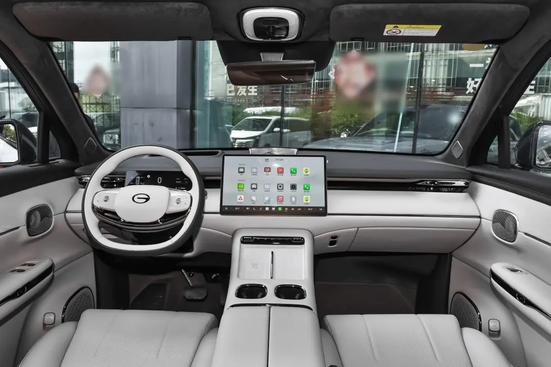 内饰方面,新车车内提供棕色、白色、黑色3款配色选择,中控台采用双层阶梯式设计,配备8.8英寸悬浮式全液晶仪表和15.6英寸2K高清中控屏,内置ADiGO 6.0车机系统,标配高通骁龙8295芯片,并配备27英寸W-HUD抬头显示系统。此外,新车还配备全新双辐式方向盘和怀挡式换挡机构,车内几乎没有任何物理按键,看起来十分简约端庄。座椅布局方面,新车将提供2+3的五座布局,座椅均采用皮质材料进行包覆,其中后排带有一块17.3英寸的3K高清吸顶屏,整体科技感非常强。