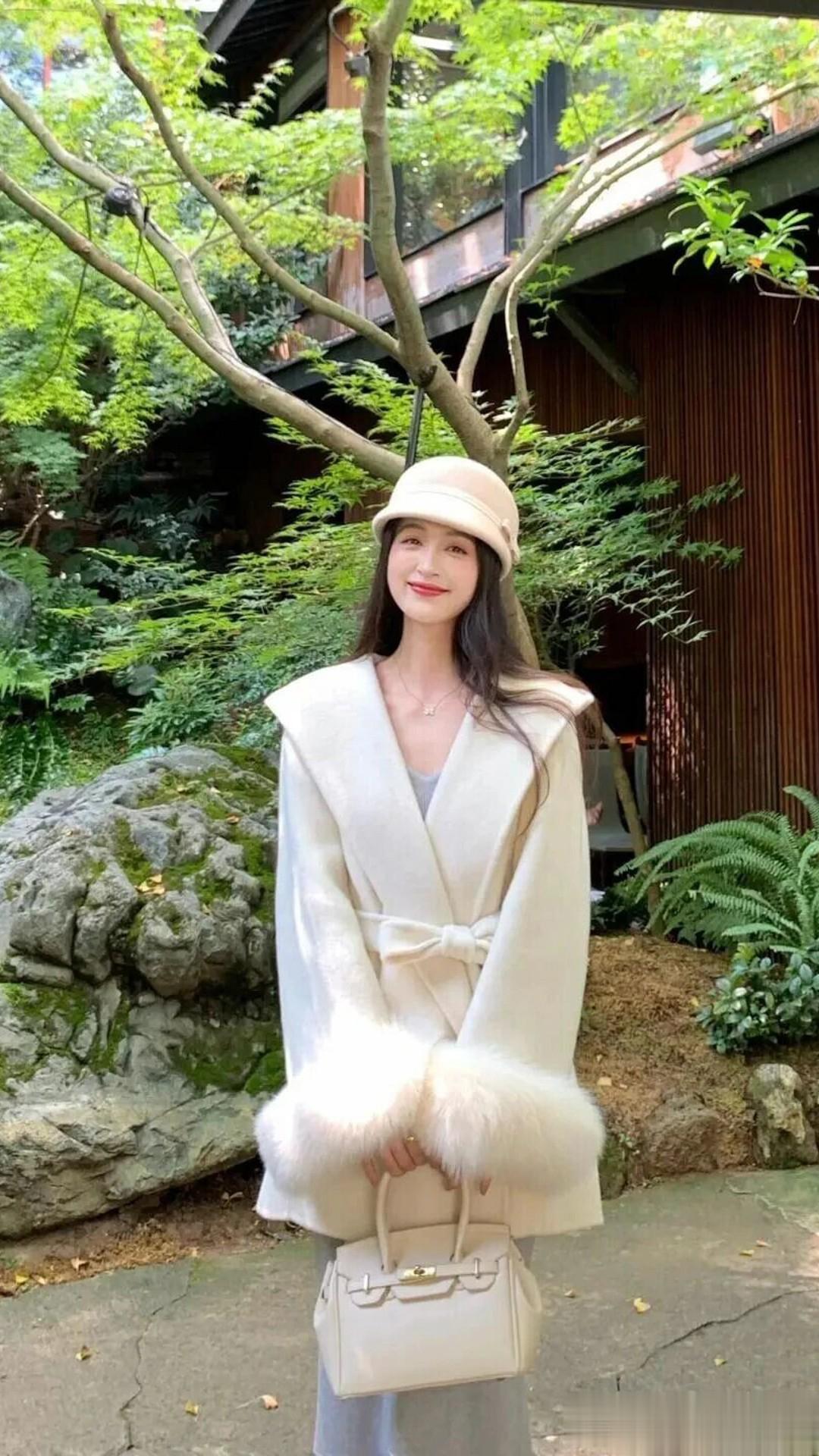 毛毛袖常常与大衣的精致剪裁相结合,比如收腰设计、立体肩线等,这种“刚柔并济”的搭配,既保留了毛绒的温柔感,又通过利落的线条避免了拖沓,从而凸显出一种低调的贵气。可拆卸的设计更是增加了实用性,让你能根据场合在优雅与休闲之间自由切换。