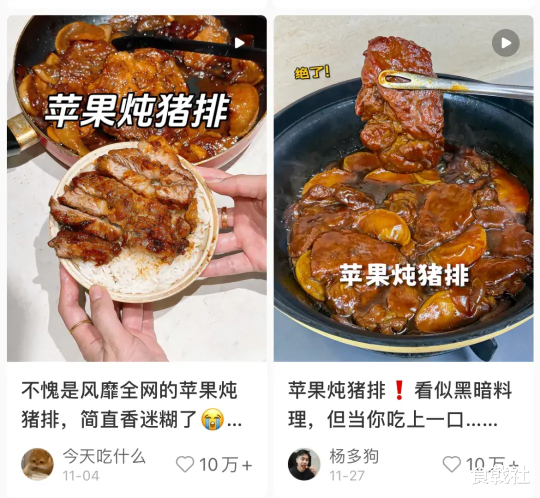 你试过用苹果入菜吗?最近在社交媒体上,苹果炖猪排、菠萝炖牛肉、苹果烧鸡排几乎轮番登场:镜头里滋滋冒着热气,裹着浓稠酱汁的肉排,水果被炖得软糯,隔着屏幕都让人忍不住咽口水。