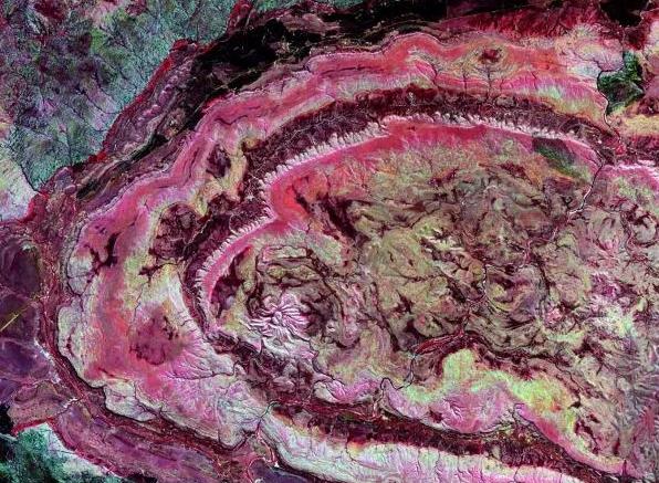 早在1970年代初,这个直径1.8公里、深150米的环形大坑就挺奇怪的,当时的地质学家初步认为它是一个“漩涡状构造”。