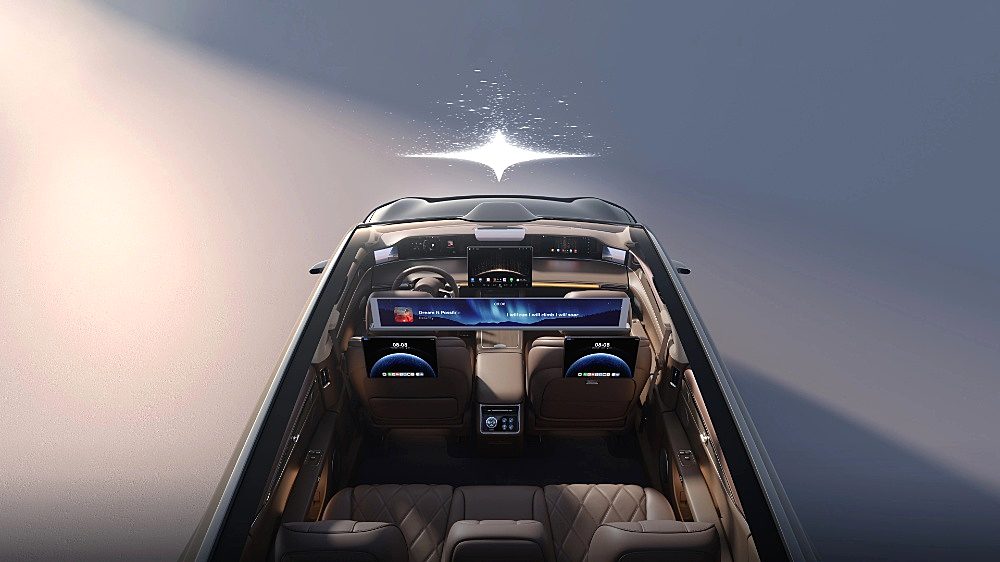 此外,车内还配备了AR-HUD抬头显示系统,可将导航、驾驶辅助等信息以增强现实的方式投射在前挡风玻璃上,科技感直接拉满。