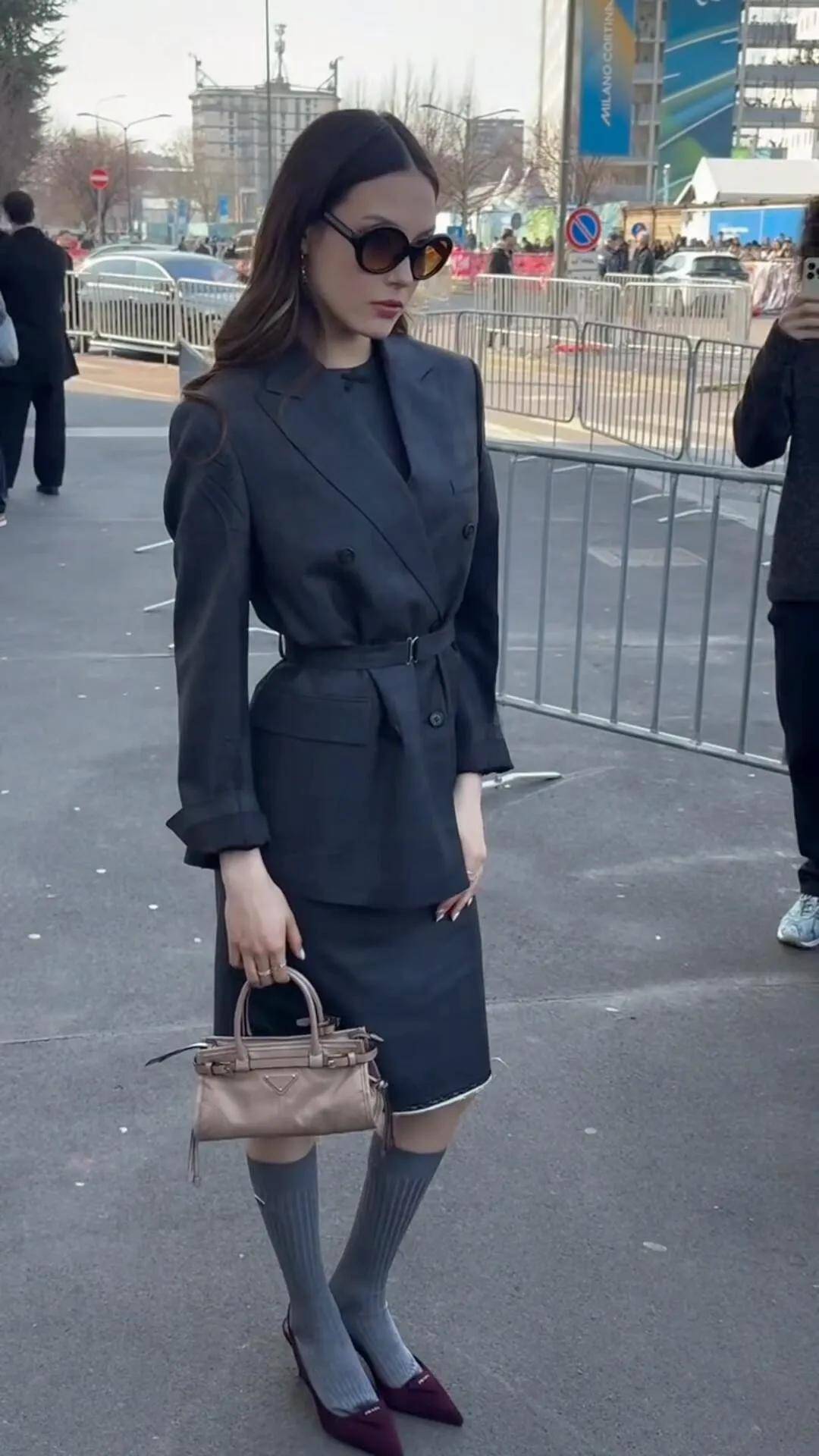 谷爱凌的出现堪称压轴,她的登场瞬间让整个秀场气氛达到了高潮。当天,谷爱凌穿着一件价值三万的Prada灰色西装外套,搭配了一双酒红色尖头小猫跟高跟鞋,细节之处更是别具一格,她用灰色袜子与高跟鞋搭配,巧妙地将帅气与柔美结合,展现出一种成熟而不失娇俏的魅力。这套造型,谷爱凌穿得恰到好处,完全驾驭了这一套既时尚又不失温柔气质的服装。她手中那款Prada小巧精致的包包也是当日的亮点,包包的颜色低调而又不失耐看,给人一种自然优雅的感觉。