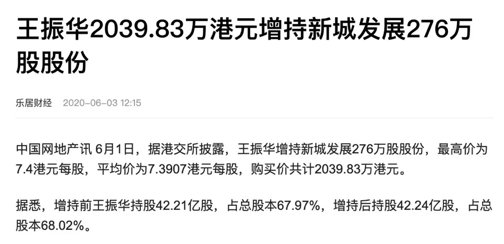 然而,即使在服刑期间,王振华还多次对新城控股的母公司「新城发展」进行增持。