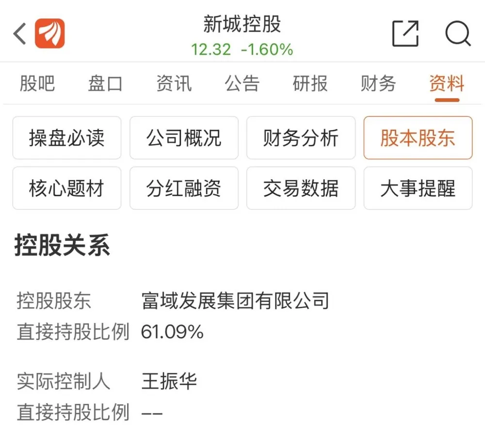 我去看了下,目前「新城控股」的实控人,依旧是王振华。