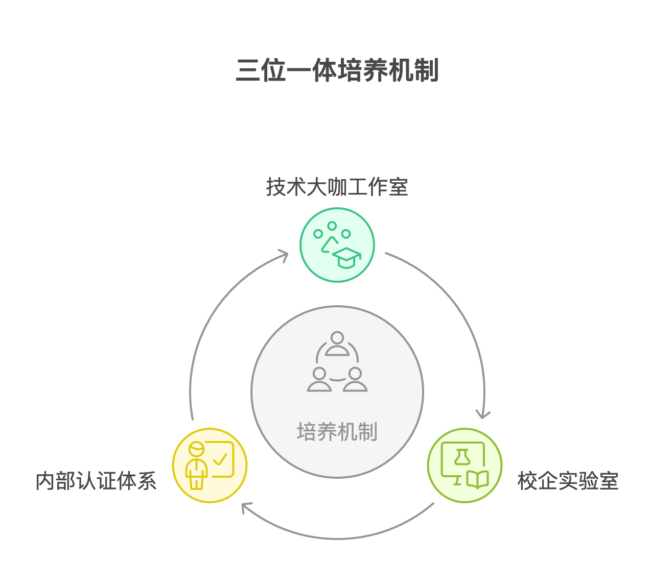 这套方法论的精髓在于”技术大咖工作室+校企实验室+内部认证体系”的三位一体培养机制。