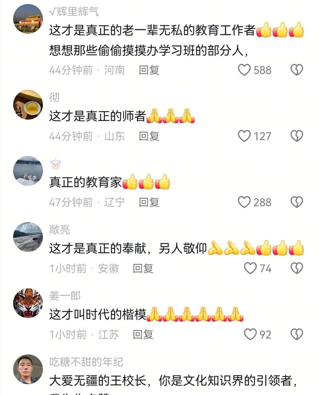 听到王校长的话,网友们除了震惊皆是对他高度评价,认为他的行为才配得上真正老一辈的教育家,他无私奉献的精神被网友们尊称为“时代楷模”。