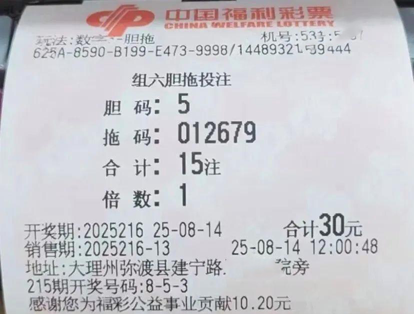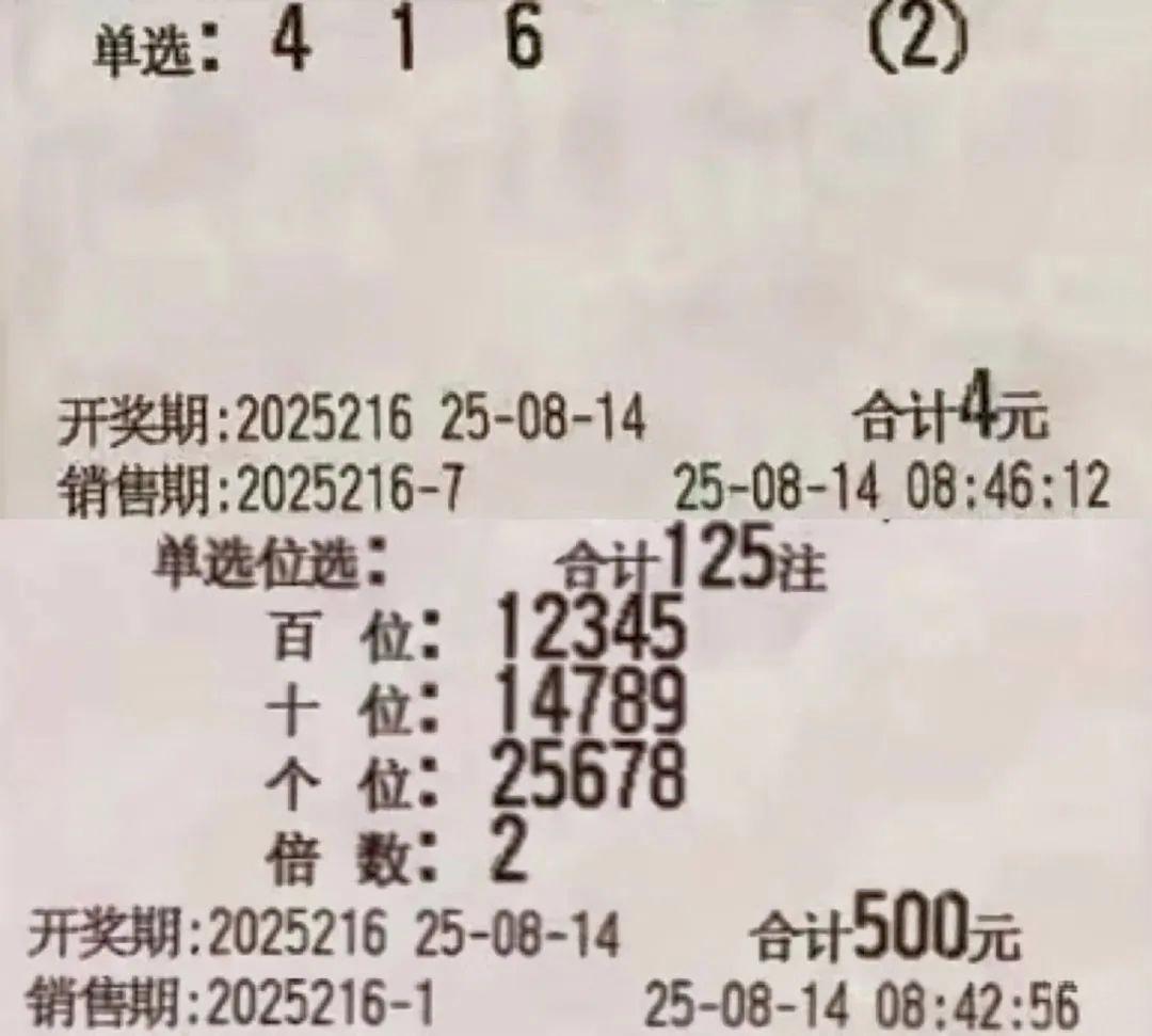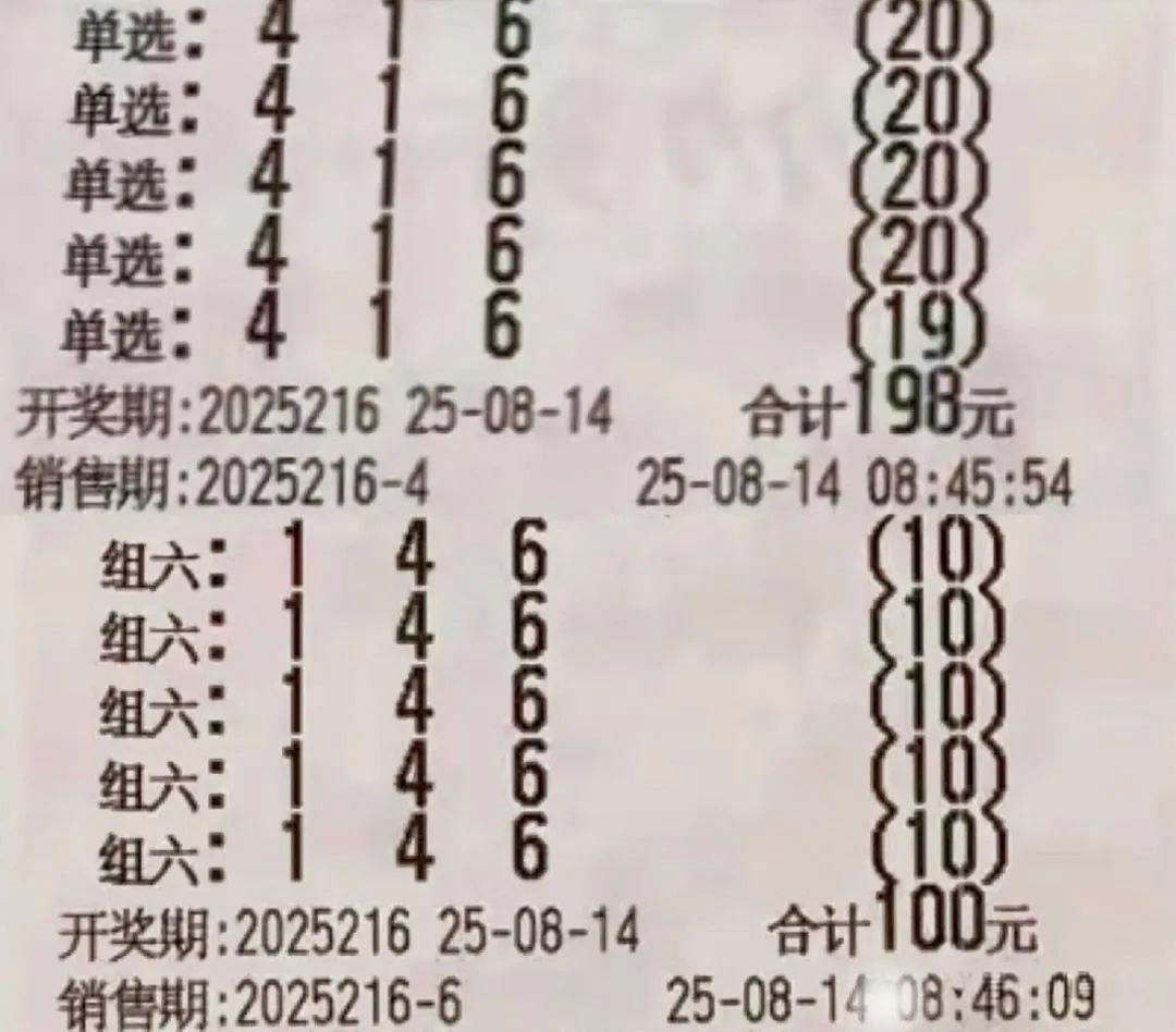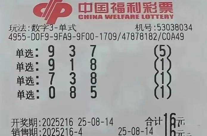 心怀期待的脚步,总能踏碎前路的迷茫。每一次不放弃的坚持,都是在为未来积攒好运。福利彩票,恰似生活里的一枚书签,标记着平凡日子里对美好的向往。8 月 14 日晚,福彩 3D 第 216 期开奖将如期而至。继续带来福彩 3D 实单晒票,与各位彩友一同感受这份简单的期盼。
