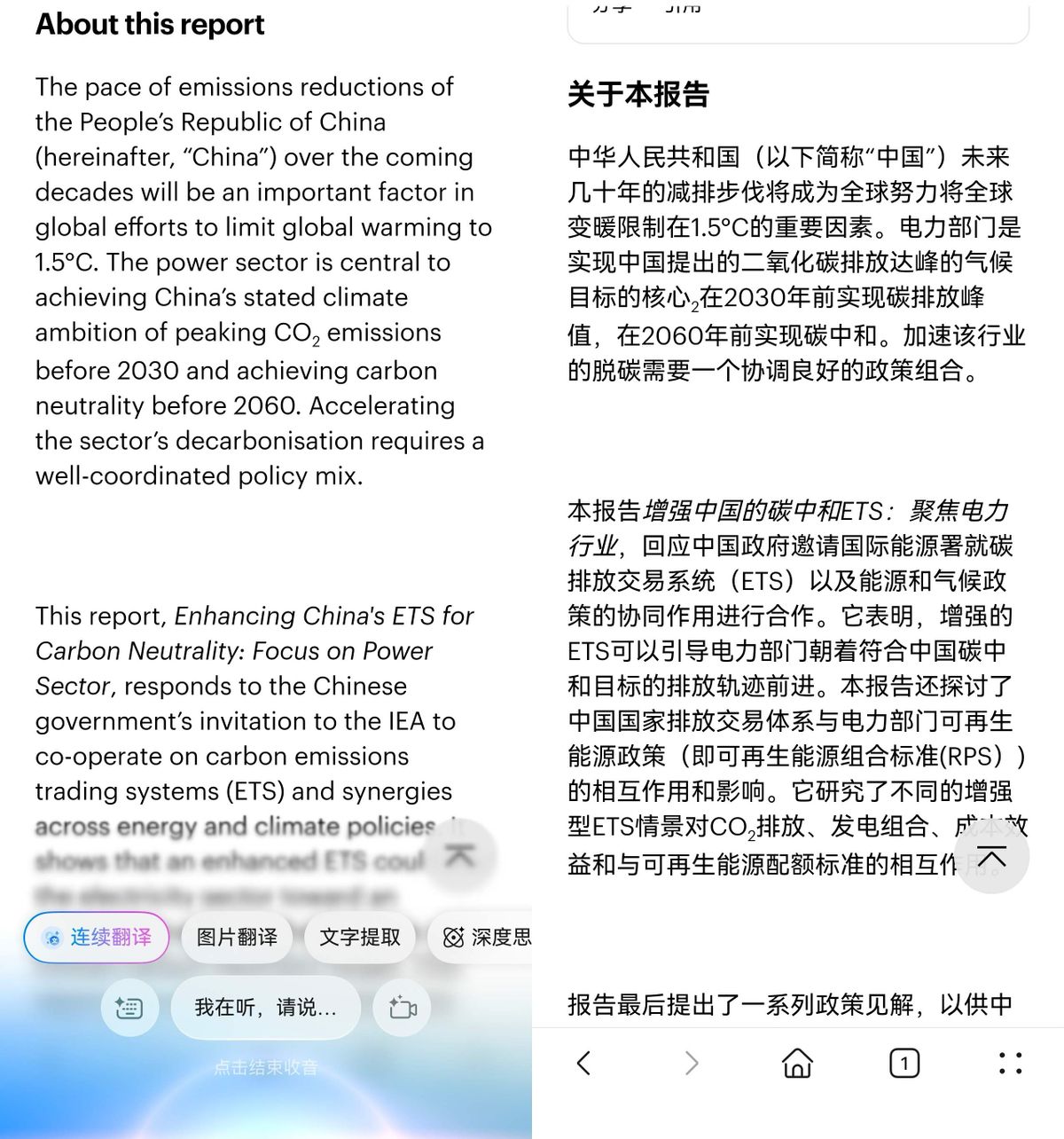 最让我惊喜的是处理外文文献。以前读英文论文,总是在查词典和猜意思之间反复横跳。现在用小艺翻译助手的连续翻译,整篇报道自动对照翻译,就像是给手机装上了“同步字幕”,专业术语翻得准,阅读体验hen流畅。虽然专业内容最终还是要自己消化,但至少跨过了这第一道语言关。