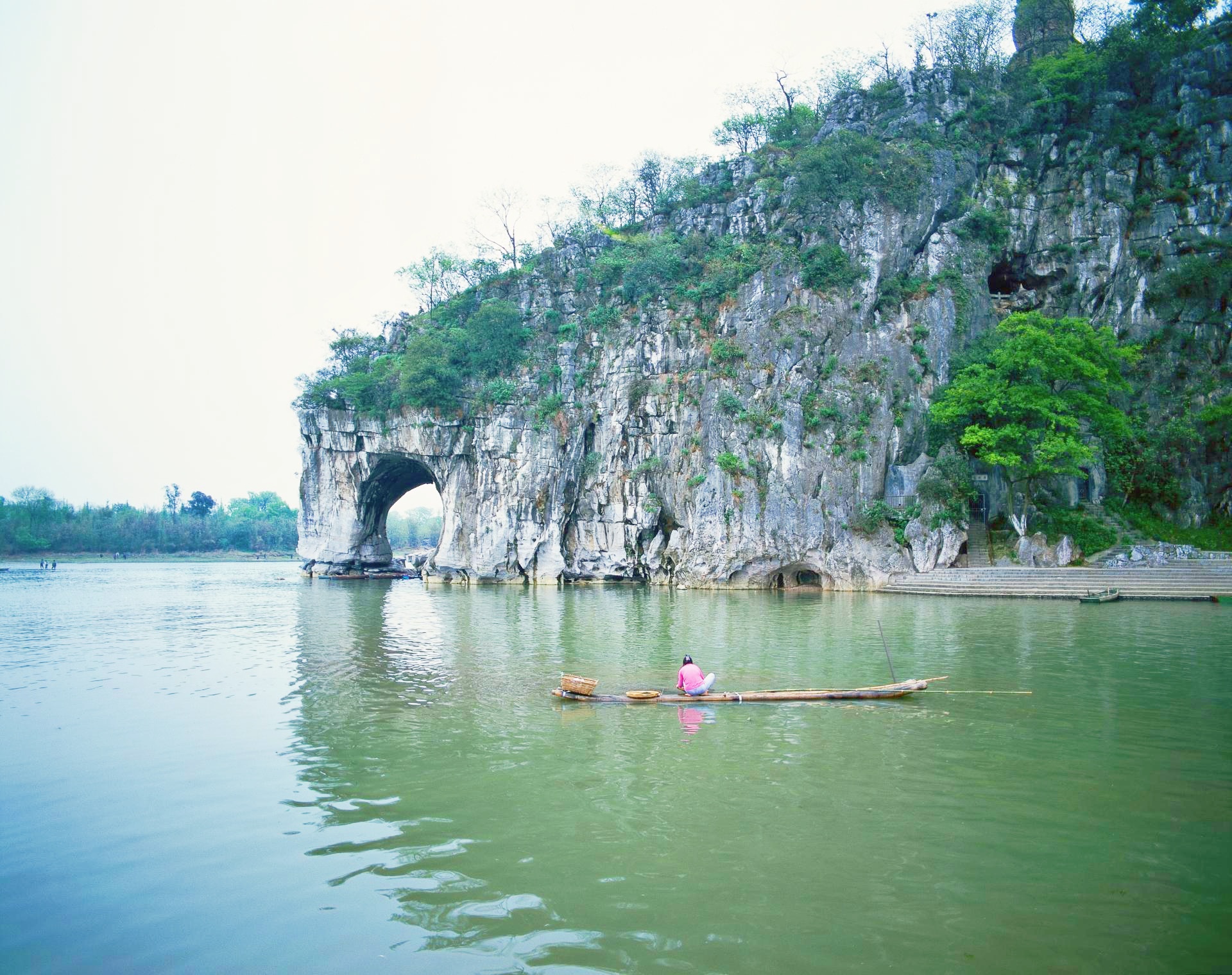 象鼻山——桂林的城徽与灵魂。这座天然石桥似一头巨象悠然饮水,鼻尖轻触漓江,千年如是。月夜泛舟,可见“象山水月”奇观,山洞如圆月倒映水中,虚实相生,仿佛时间在此静止。它不仅是地理标志,更是一种温柔的隐喻:桂林山水,本就拥有这般恬静而恒久的生命姿态。