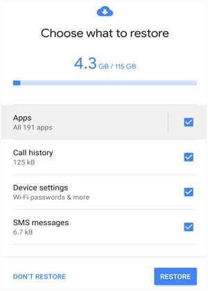 3. 在设置过程中,手机会询问您是否要从备份中恢复数据。选择摩托罗拉设备中的备份,您的信息(以及其他数据)将恢复到新的三星手机中。