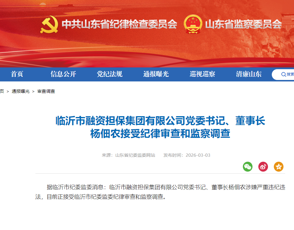 公元二〇二六年三月,农运终尽。临沂市纪委监委通报,杨佃农涉嫌严重违纪违法,接受纪律审查和监察调查。彼时距其执掌融资担保集团,不过半载有余。昔之政策宣讲者,今之阶下待罪囚;昔之金融创新旗手,今之反腐反面典型,荣辱翻转,瞬息之间。