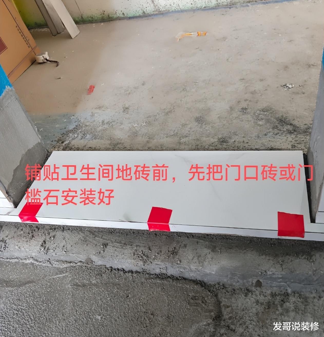 但真正重要的细节,师傅可没告诉你,那就是卫生间的门口的防水处理,首先在铺贴地砖前,先安装门槛石或者口门砖,然后用堵漏剂调好后,用毛刷均匀饱满,刷在门槛石内口 ,最后再开始贴地砖,不然人入住以后,墙面渗水返碱,这个时候你再来返工,多花钱不说,效果还不好。