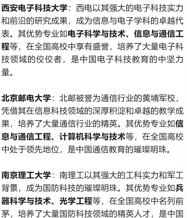当然,选择一所学校不仅仅是看排名,还需要结合自身兴趣和未来规划。例如,如果你对财经领域感兴趣,那么上财无疑是你的好选择;如果你擅长编程,喜欢信息技术,那么北邮可能会是你的梦想之地;如果你对国防科技充满热情,南理工会为你提供一个施展才华的平台。