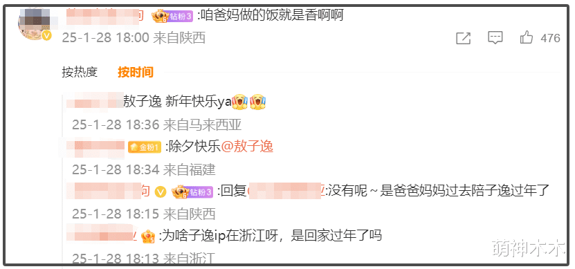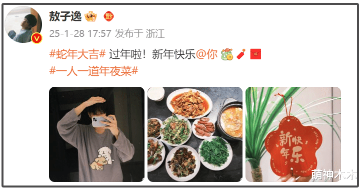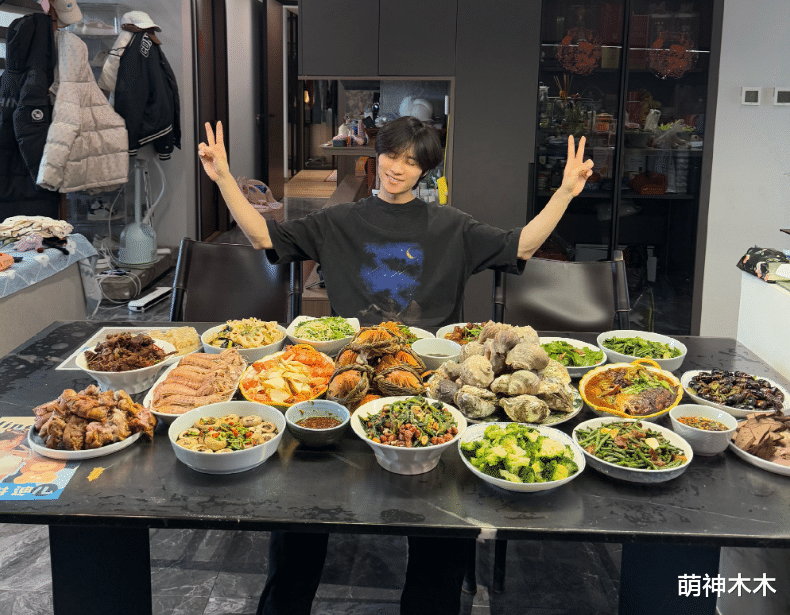 敖子逸晒出自家年夜饭,荤素搭配,颜色也很好看。粉丝在评论区透露敖子逸的父母今年去陪他一起过年,一家团圆就是过年的意义。